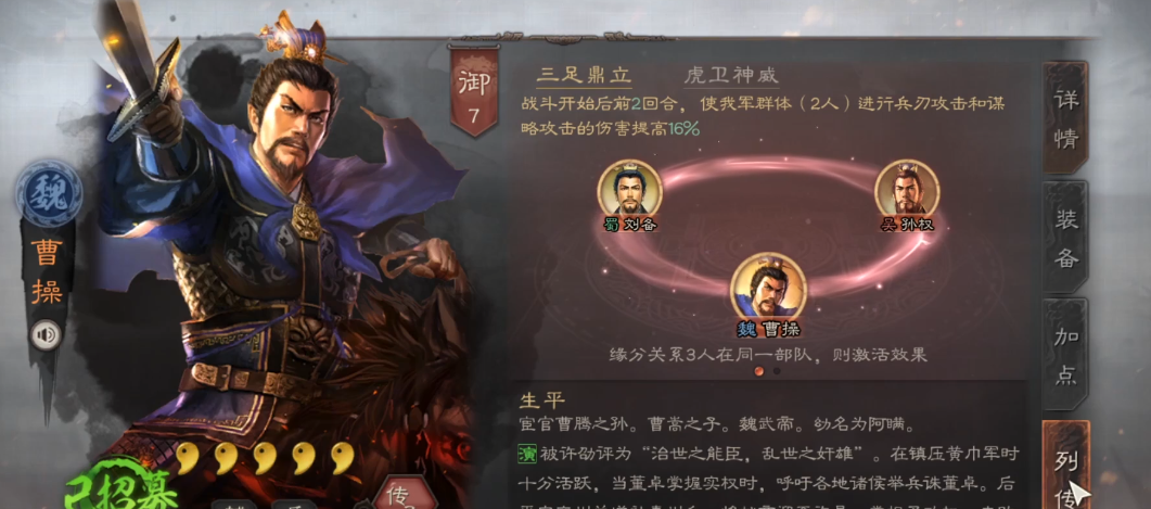 司马懿在三国志战略版S2赛季中是一位以后期爆发为核心的谋略型武将,他的自带战法鹰视狼顾能够在战斗前四回合为队友提供攻心效果,增强整体续航,同时自身具备高额谋略伤害潜力。司马懿的属性成长优秀,智力和统率突出,使他在生存和输出方面表现稳定,适合在盾兵阵容中发挥最大效能。玩家在S2赛季可以通过典藏系统获取司马懿,避免抽卡的不确定性,但需合理规划资源投入。他的技能机制注重延迟输出,前几回合积累优势,后几回合爆发收割,这种特点决定了阵容构建和战法选择的方向。